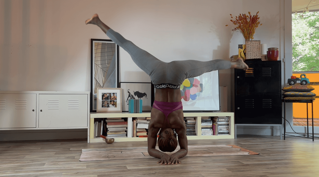 Une approche créative de la posture sur les avant-bras (Pincha Mayurasana) : on la travaille en mouvement, avec des transitions dansées et un esprit léger.